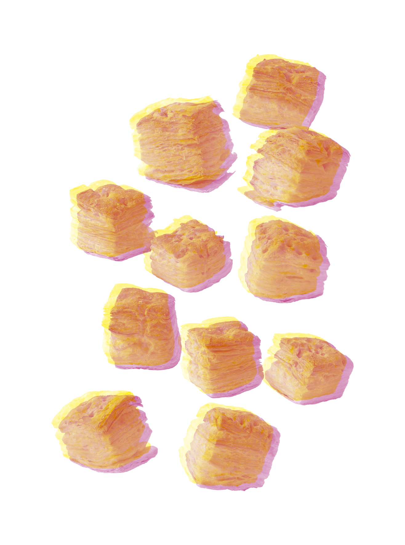 La acumulación de objetos y lugares se presenta en la obra como una aglutinación de capas. Por este motivo decidí separar las capas de color de las fotografías en las que éstas se componen de uno o varios colores entre cian, magenta, amarillo y gris.